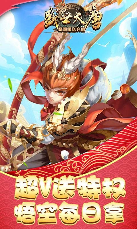 游戏上线送vip,无限商城直接元宝购买海量道具,登录换充值卡,直接领取充值奖励《盛世大唐降魔版送充值》是一款以西游为题材,招募三界仙神养成为核心玩法的RPG手游。玩家扮演秩序重塑者,收服各路伙伴,一路斩妖除魔,修行七十二变,成为统领三界的新一代霸主。更有群仙比武,封神榜,大闹天宫,三界战场,海量仙盟玩法等你来战!全新无限福利,真实充值券、元宝、金币、十连抽券、万能碎片每日无限免费赠送!