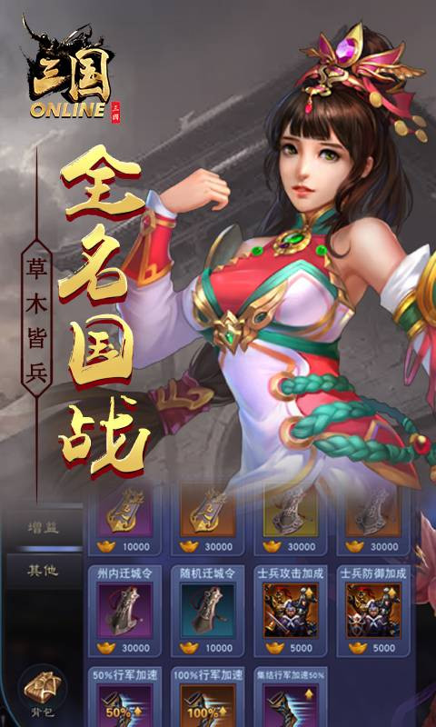 【三国online】是一款三国历史背景的策略战争手机游戏,游戏以三国历史为背景,玩家可以扮演城主的身份,通过高度自由的策略博弈,一步步攻占据点、州府、王城等,直至取代魏、蜀、吴三国的城主身份,攻占洛阳皇城,成为推演历史的英雄豪杰。