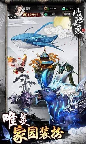 《山海之痕》是一款ARPG+养成类的h5放置游戏,以水墨国风的美术风格打造风景绝美、万兽争雄的绚丽山海经世界。游戏背景发生在上古年间,神魔大战,导致五灵崩散、妖兽横行、生灵涂炭。玩家作为修仙之士,虽声明不显、法力低微,却毅然挺身而出,携虽千万人吾往矣之势,修正五灵,降妖除魔,一步步提升自己,完成主线任务、击杀BOSS、通关副本。最终还世界一片安宁祥和。游戏以人物养成、异兽养成和伙伴攻略为主。上千种装备替换、锻造、精炼以提升自身能力,上百种异兽技能,随意搭配,拓展,深度挖掘上古异兽的风采,同时寻求各种上古神祗的支持,化身伙伴,共同征战。救世之路玩家并非孤身一人,玩家们可以与其他仙友组队,横扫大荒,荡平妖魔,重现上古人族辉光,同时开启结婚、组建家园,装饰家园,为横扫大荒的艰险道路中增添一抹温馨。还能和志同道合的仙友一起组建宗门,在偌大的上古天地,创出自己的一番事业,争夺第一宗门之位。