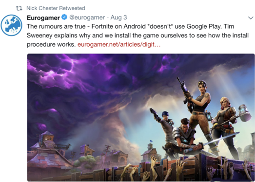 安卓是一个开放平台,与iOS不同,所以玩家可以通过官方商店以外的渠道下载《堡垒之夜》。《堡垒之夜》选择不在Google Play上线的最主要原因,是躲避Google高额的“保护费”。