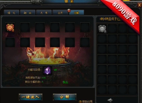 但是分解的装备也是有要求的,被分解的装备必须是3转至6转的装备,低于或者高于这个等级的装备都是无法分解的,分解装备需要消耗一定的绑元,且每天分解的次数也是有限制的,每天最多可以分解10个装备