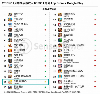 在SensorTower11月中国手游出海收入榜中,心动网络发行的MMO手游《仙境传说RO》空降榜单第14名。成为本期榜单中最抢眼的出海产品。