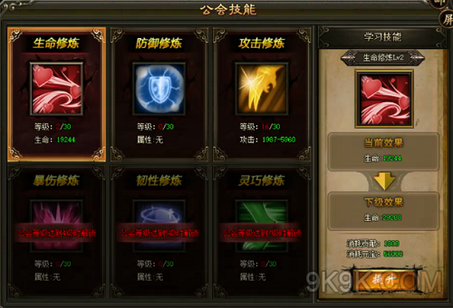 学习公会技能提升角色的属性值还是蛮多的,但是提升技能等级需要大量的公会贡献值及少量的元宝。