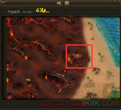 魔界封印的入口在烈焰战场,进入烈焰战场后,打开地图,有一个很明显的标志,很好找的哦!这是个跨服玩法,因此这里PK是在所难免的,而且是和其他多个服务器的玩家PK。击杀玩家会有积分奖励,同样被杀会扣积分。同时还会不时刷出小怪,小怪自爆很伤,要注意躲避。