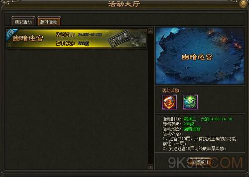 幽暗迷宫活动在每周2,6的下午2点到2点半开启,迷宫一共有10层,每层迷宫都有4条路可以供玩家选择,但是只有一条路是正确的,玩家进入错误的道路就会被传送回之前的层数。玩家在找到正常的路径时,可以使用右侧的导航栏进行标记,正确的路径,以防选错楼层,被传送到之前的楼层,忘记正确的道路是哪一条。