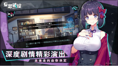 《妄想破绽》在保留了作为文字冒险精髓的剧情叙事的同时,还加入了轻松明快的小游戏作为点缀,同时还结合了时下流行的角色养成玩法,让玩家在体验剧情的同时,还能自由养成属于自己的虚拟人物。