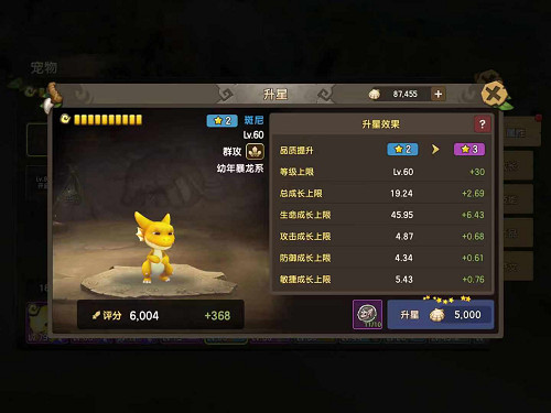 当宠物达到一定等级的时候,会遇到一个自身星级所限定的等级,这时候就需要升星来助力宠物破壁。