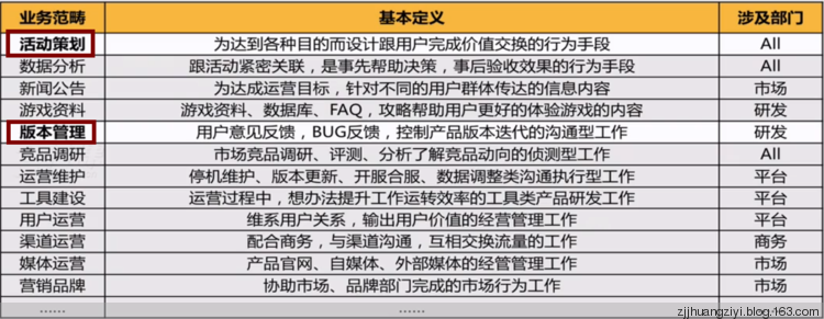游戏运营工作主要涉及的业务有: