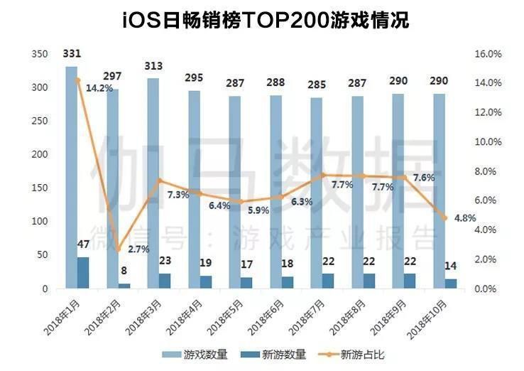 另外,伽马数据近日发布了10月移动游戏简报,指出当月中国iOS日畅销榜TOP200游戏中,新游占比出现大幅下滑,达到今年除2月外的最低点。新游收入表现也不尽人意,10月移动游戏收入榜TOP20中,仅有《红警OL》一款新游上榜。