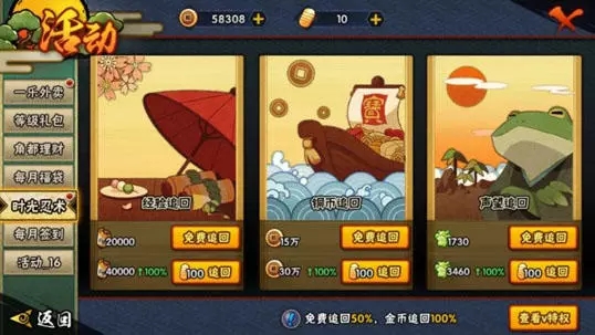 主要回购道具为金币、经验,还可增加游戏内试炼玩法产出的资源。