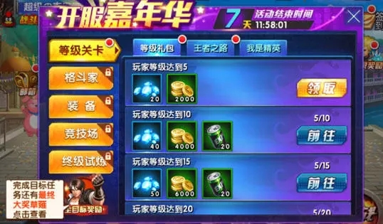 除了常规的等级礼包外,在开服时也可额外增加限时的等级礼包,一定时间内达成等级获得额外奖励,使用户在刚玩游戏的时候有紧迫感,增加用户粘性。