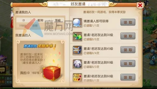 通过在游戏外邀请其他的用户参与到本游戏中,邀请人和被邀请人都可获得奖励。