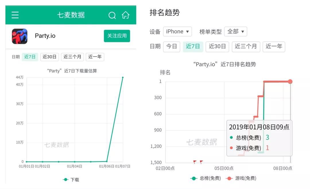 近日,一款名为【Party.io】的游戏强势杀入中国区 App Store 总榜(免费)Top 3,登顶游戏榜(免费)第一,单日下载量突破 40W+!在全球范围的榜单排名也非常之高。