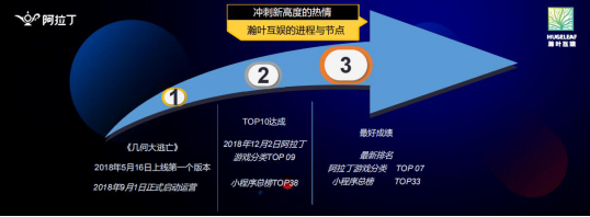 《几何大逃亡》的发展过程是我们一步一个坎摸索出来的,2018年5月16号我们上线了第一个版本,但是直到2018年9月1号才正式启动运营,用了差不多 3-4个月的时间仔细打磨了整个产品。然后在2018年12月份的时候游戏终于上榜了,进入了阿拉丁游戏分类榜的TOP10。