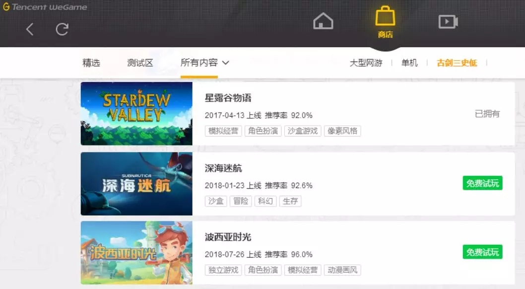 同时,腾讯WeGame平台上聚集了大量经营类沙盒游戏产品,品质优秀,具备丰富的二次创作空间。据统计,在WeGame已上架的近百款游戏中,游戏推荐度平均中位数高达87.8%。其中37款沙盒经营类大多具有具有良好的口碑评价,具有入门门槛低,创意发挥度高的特点,特别是《星露谷物语》、《深海迷航》、《波西亚时光》等长期保持90%以上的好评率。