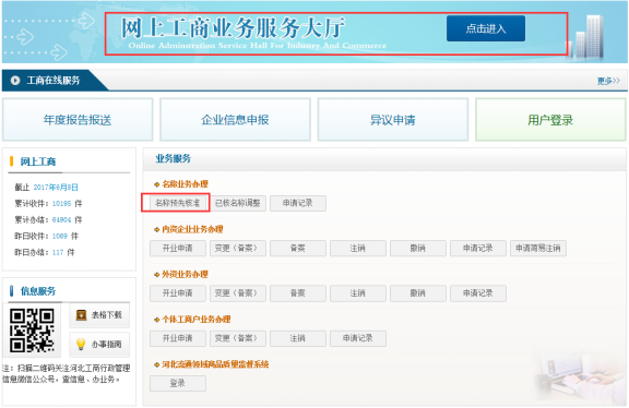 登录网上服务大厅进行企业名称预先核准