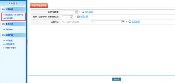 名称申报是自然人用户进行网上名称申请信息填报操作的功能。
