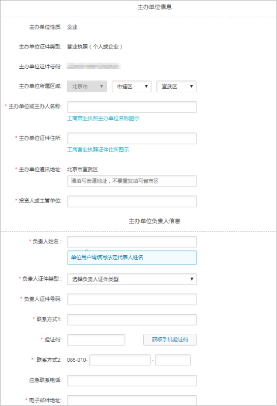 说明:主办单位通讯地址可填写证件上的地址,也可填写您实际的办公或住所地址。