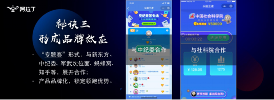 其实答题类游戏比较天生的可以做一些跨界的品牌合作,是内容性的品牌,在头脑王者的运营过程中跟知乎、蚂蜂窝、新东方、中纪委都进行了很多专题赛的活动,有两个优势。
