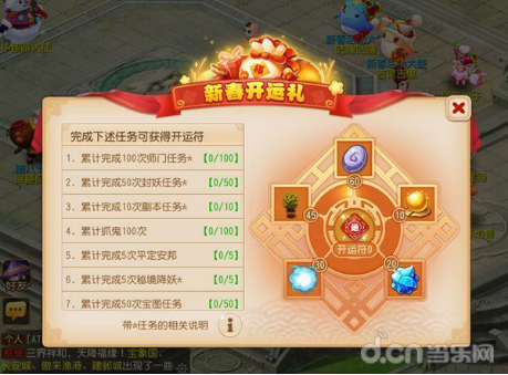 再如:指定任务完成后,得到积分/道具/任务数量等任务奖励,兑换奖品。还是以手游《梦幻西游》的春节活动为例,其设计的“新春开运礼”就是积分/道具/任务数量兑换奖励的游戏形式范畴。该活动主要分为三个步骤: