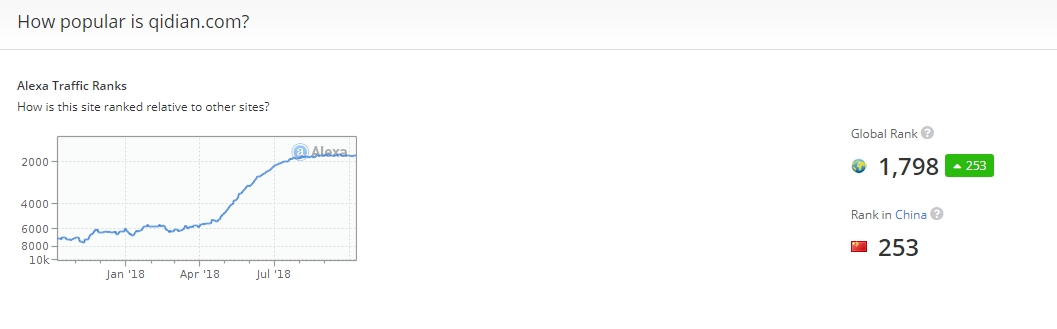 有趣的是,相比之下,国内网文小说起点网的全球排名反而更低一些,为 1798 名,而晋江网的全球排名则为 1357 名。单个排名网站的排名统计必然不能说明全部问题,但这在一定程度上证明了国外中国网文小说读者市场的庞大。(以上数据均为截稿前显示数据。)