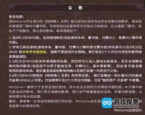 值得一提的是,版号停发期间,WeGame版《怪物猎人 世界》惨遭下架, 享年4天19小时。在这之后,“中国游戏最黑暗的时刻”、“有组织的大量举报”之类的言论层出不穷,“现在我只想做个好人”的腾讯也发现原来他仍然没有选择。