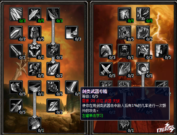 绝大多数人选择了剑系专精。这不是因为多砍一下比较好,而是因为游戏里设计的好斧头太少。在拉格纳罗斯的掉落表里有双手剑、双手斧各一把,到了奈法利安就只有双手剑、没有双手斧。TAQ里皇帝掉双手剑、克苏恩掉双手斧,但后者的难度比前者高出太多太多……Naxx里有两把双手剑而且有一把是赫赫有名的“堕落的灰烬使者”!显然,剑比斧多。再加上爆率这玩意儿虚无缥缈,22%爆再加5%是27%,实战未必能看出来什么区别——但多砍一下可是实实在在的。在这种思路影响下,地球时代的近战双手武器输出职业大都选择了双手剑(PVE)或双手锤(PVP),双手斧问津之人不多。