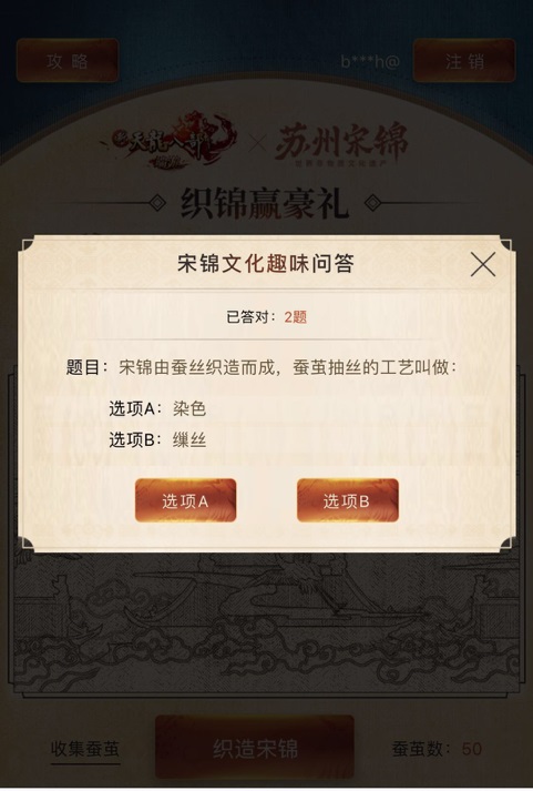 时装之外,宋锦还渗透到游戏任务中,引导玩家前往指定的地点,体验宋锦的织造过程。比如在近日,游戏便策划了一场全新的传统文化助力活动,活动期间收集蚕茧织锦秀即可获取12周年纪念币等礼物,通过答题及传播的形式助力宋锦技艺的普及。好处在于,它不仅仅充当展示品的角色,还给玩家提供了这项非物质文化遗产更多维度的信息,包括但不限于制作工艺等,这种机会在同类游戏中其实并不常有。
