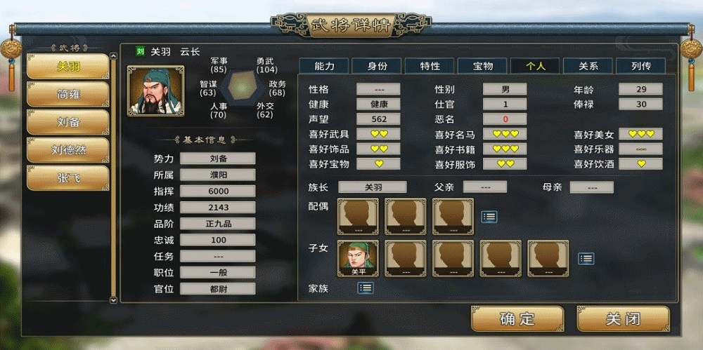 玩家对于一名武将的培养,不仅限于数值成长,也包括了发展家族关系等等。这也是游戏具有丰富可消耗内容的一大体现。