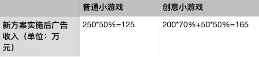举个例子,假设单日广告收入为250万元,那么新方案实施后各类小程序和小游戏的收益情况如下图