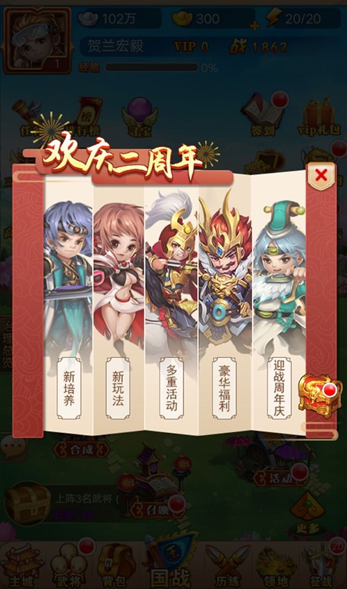 福利一:开放武将重生功能,返还培养武将所需的材料,让主公从新定义章节的最强武将;