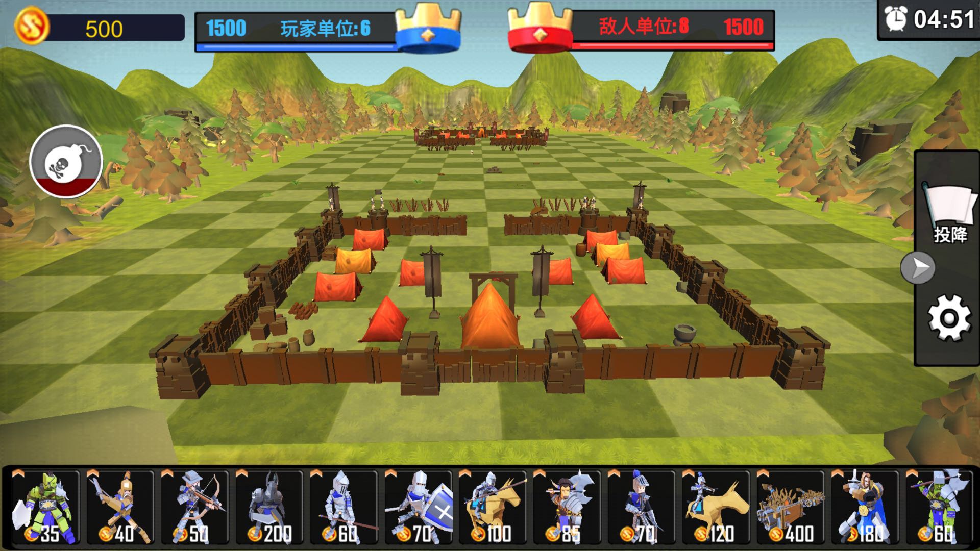 游戏内,玩家需要花费金币,选择下方兵种,然后点击屏幕内的己方阵地完成派遣。对局两方经过交战后,最终摧毁敌方兵营的一方则代表胜利。