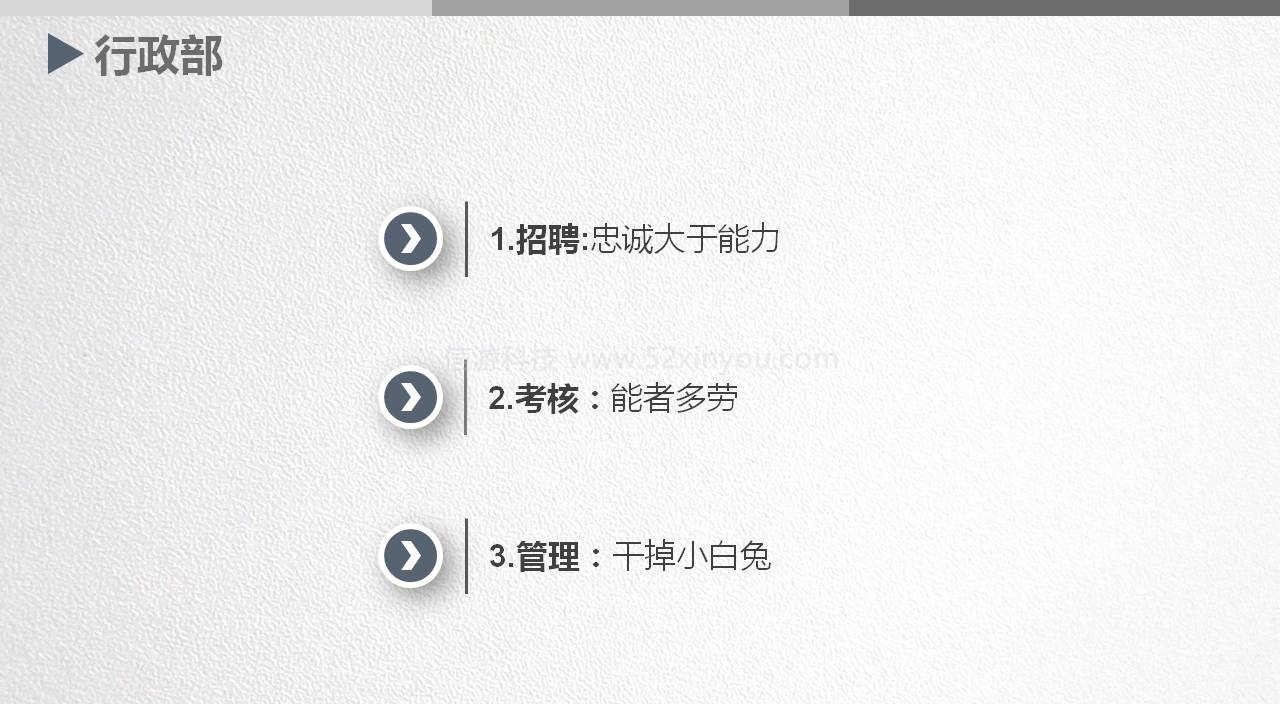 1. 招聘:忠诚大于能力,初创部门建议优先选择忠诚度比较高的员工,其次考虑能力,因为能力是可以培养的,忠诚度比较难培养,一般是靠领导的个人魅力。